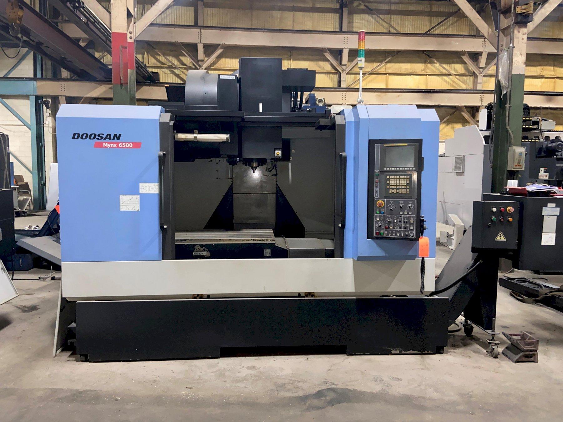 Contact UsDoosan Mynx 6500 CNC Vertical Machining Center, Fanuc Series i, 50"/26"/25" Travels, 8K Spindle, 30 ATC, 21 Horsepower, Chiller, Box Way Design, 2011