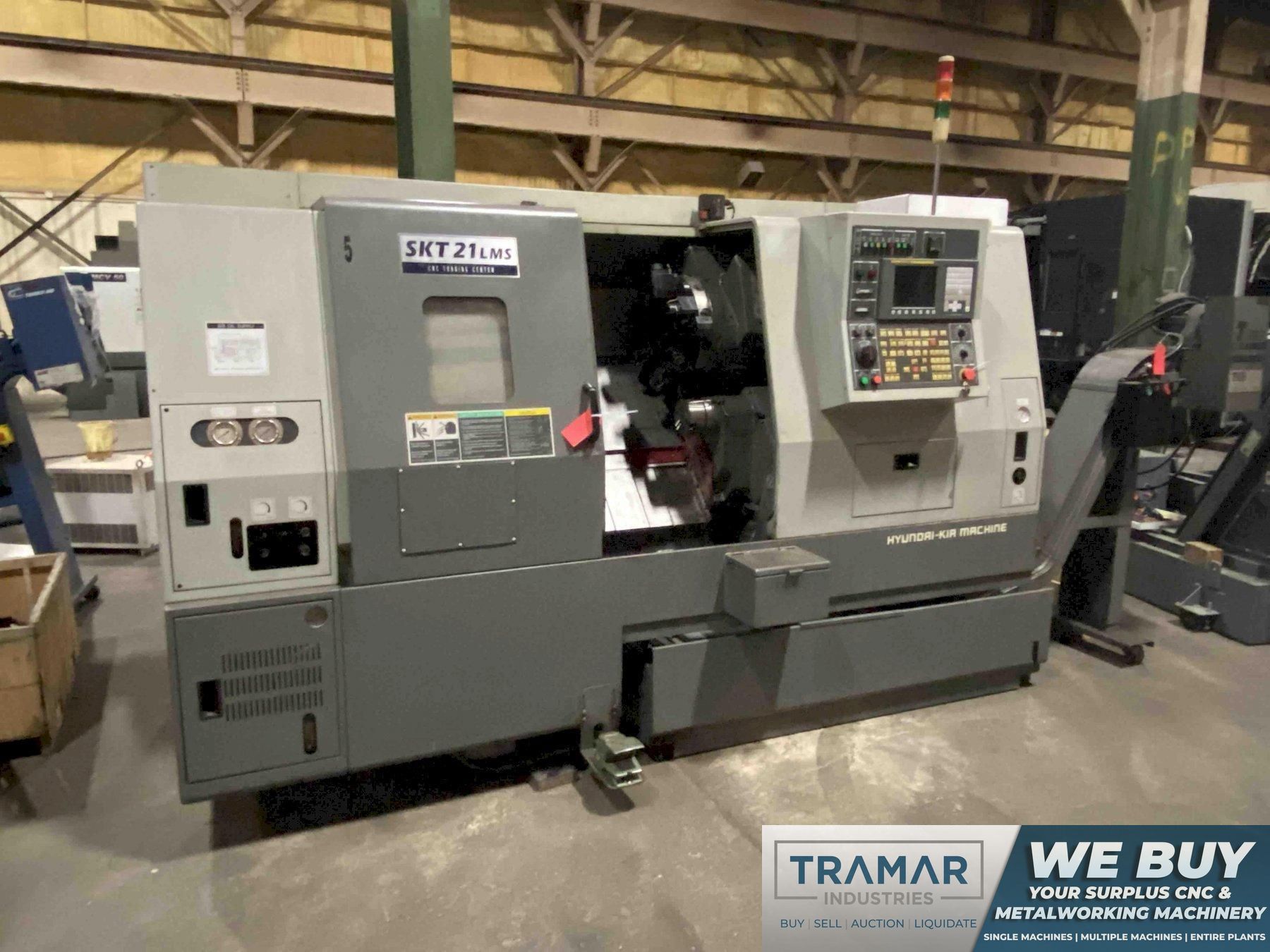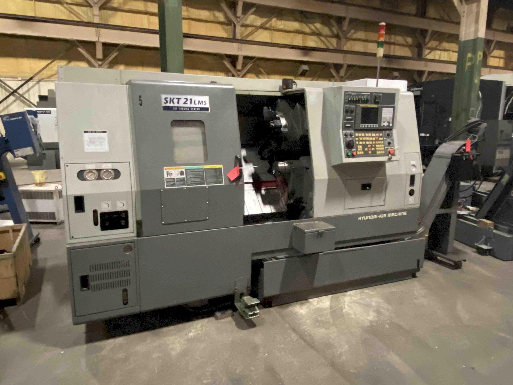 Contact UsHyundai Kia SKT21LMS CNC Lathe, Fanuc 0iTC, 8" Chuck, 5.3" Sub Chuck, 21.6" Swing, 20.8" Centers, C-Axis, Live Milling, 2.6" Bar Cap, 12 Position Turret, Parts Catcher, Tool Eye, Chip Conv, Low Hours, 2006