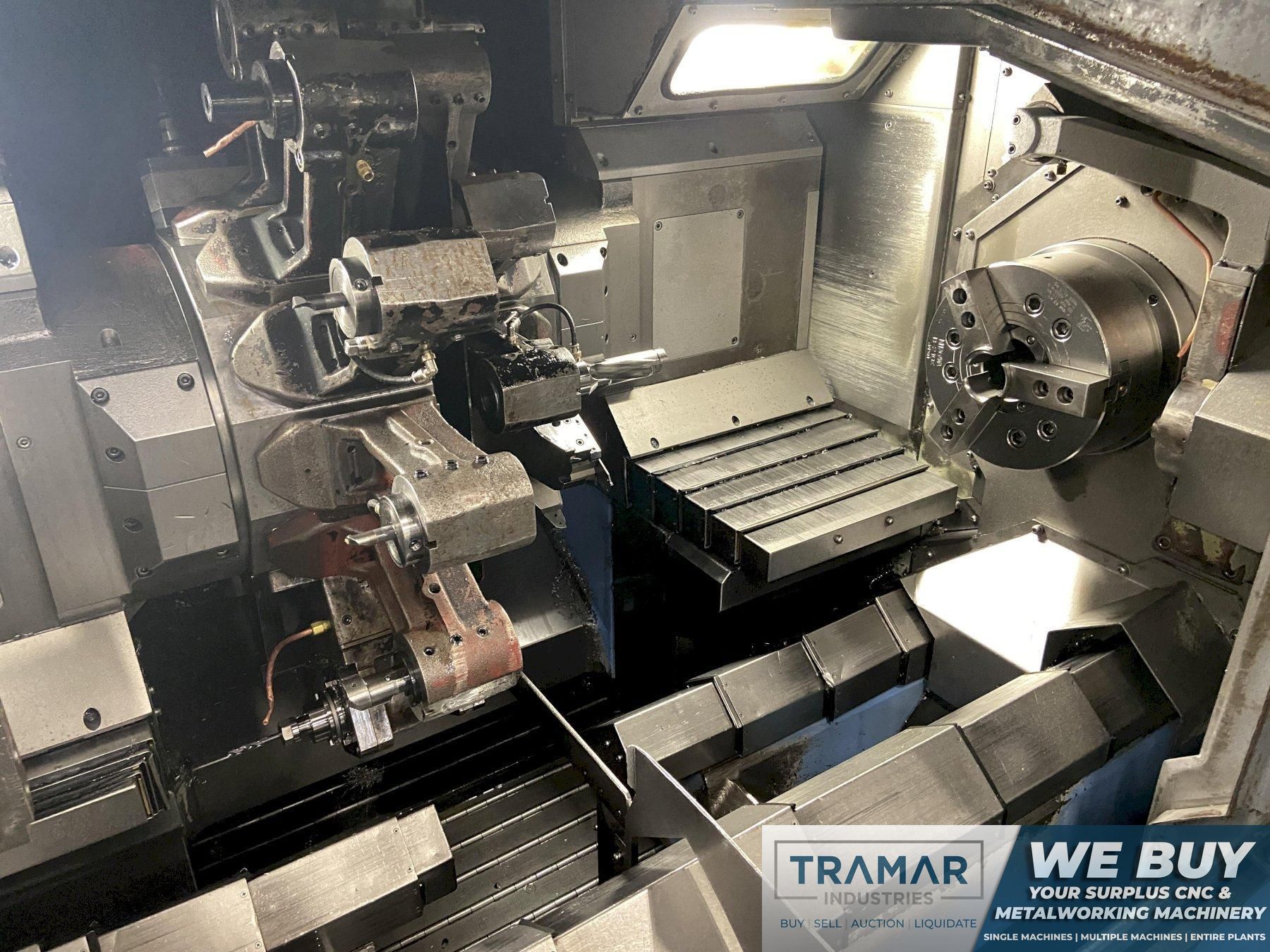 (2) 12 Station Turrets (2) Tool Probes Chip Conveyor LIVE TOOL HOLDERS (APPROX 5) Coolant pump& tank |