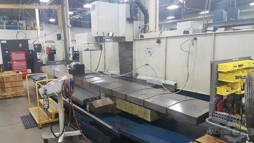 Serial Number 9043 Control Centurion 7 Number of Axis 4 Table Size 126" x 32" Table Capacity 5,000 lbs X-Axis Travel 120" Y-Axis Travel 35" Z-Axis Travel 30" X-Axis Rapid Feedrate 500 IPM Y-Axis Rapid Feedrate 500 IPM Z-Axis Rapid Feedrate 500 IPM Cutting Rate 300 IPM Spindle Speed 8,000 RPM Spindle Taper 50 Main Motor 24 Horsepower Coolant Thru Spindle (Y/N) N Tool Changer Capacity 20 Machine Dimensions 300" x 116" Machine Weight 40,000 lbs Equipped With: Centurion 7 PC Based CNC Control Conversational or G code Programming Teach Mode Dual Electronic Handwheels Color LCD Dispay 2 Speed Gearbox Troyke 10" 4th Axis Rotary Table with Tailstock Rear Splash Guards Remote HandWheel Floppy Drive Flood Coolant 12 MB Parts Storage Memory 16 MB Program Execution Memory Engraving, Helical Interpolation, Auto Routines, User Definable Macros, Trig Assist Coordinate Rotation, Scaling, Mirror Image, Thread Milling S Curve Accel/Decel Ramp Modifier with Feed Forward and Look Ahead for High Speed Machining or 3D Milling. DXF File Conversion software Flash Memory Card Device Twin Chip Augers |