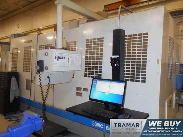 Contact UsOkuma MC-60VAE CNC Vertical Machining Center, OSP 7000M, 59"/26"/24" Travels, CT50 Taper, 5K Spindle, 32 ATC, Helical, DNC-B, Geared Head, Handwheel, Chip Conveyor, 1998