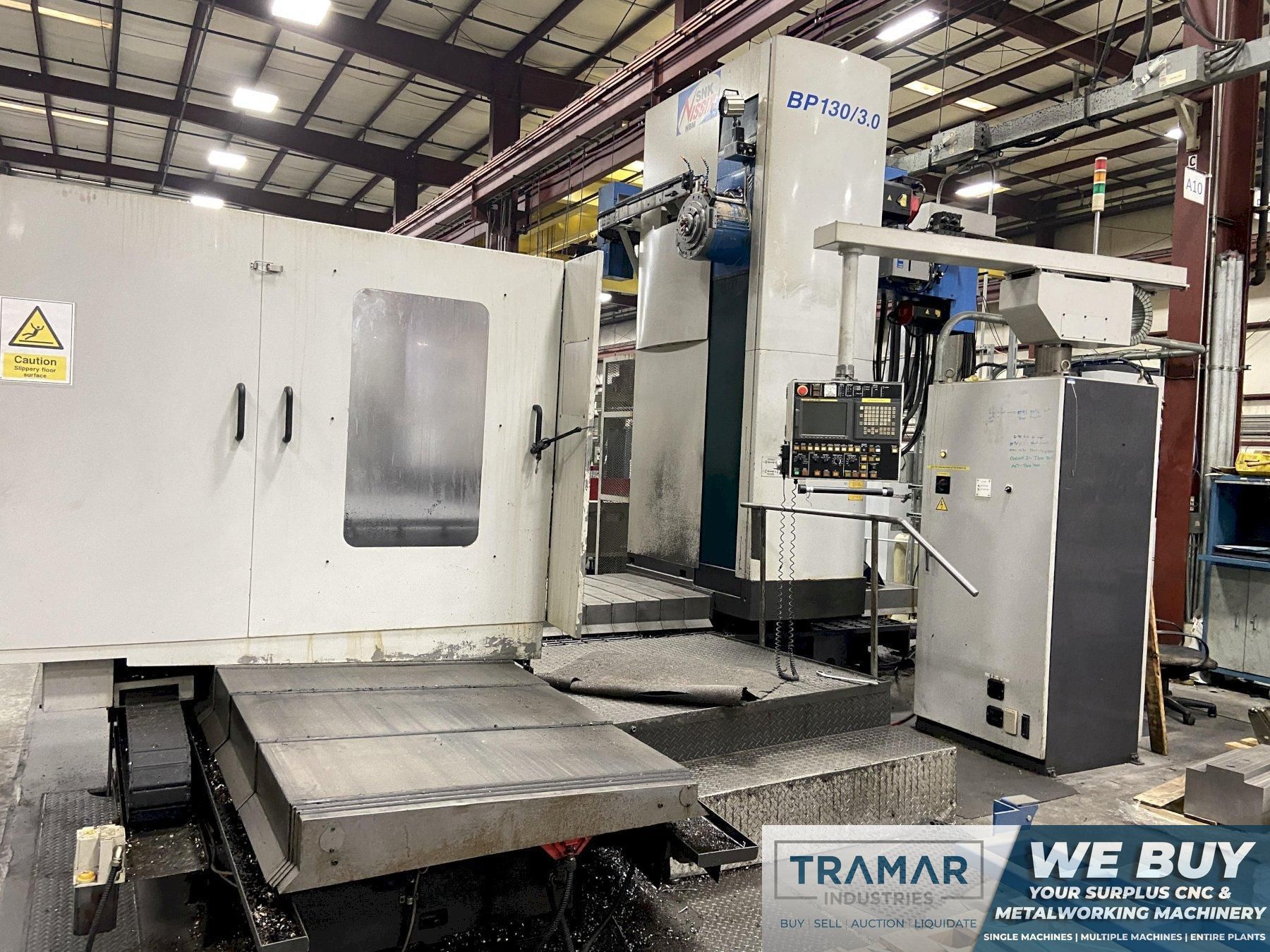 Contact UsSNK Nissin BP130/3.0 5.12" CNC Horizontal Boring Mill, Fanuc 16iMB, 118"/79"/63"/28"(quill), Full 4th Axis, CTS, 35 HP, CAT 50, 60 ATC, 2008